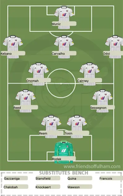 Mitro, Wilson COVID? Tete, Bryan (could be available?), Cavaleiro, Kongolo injured and Seri, Robinson, Hector and DeCordovia-Reid on international duty.