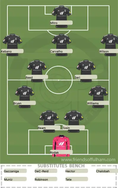 Gentleman Jim commented that Mitro’s now in a goal drought, as he didn’t scored in 90 minutes!, lucky for us Kebano and Wilson can make up the slack! All joking aside I can’t remember a Fulham squad being so united, they all appear to want to play for each other, just look at the goal celebrations and how even non playing members get involved.